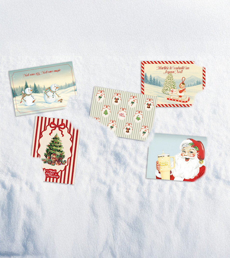 A box of 20 Christmas cards, created for the Martine Cosmetics pop-up